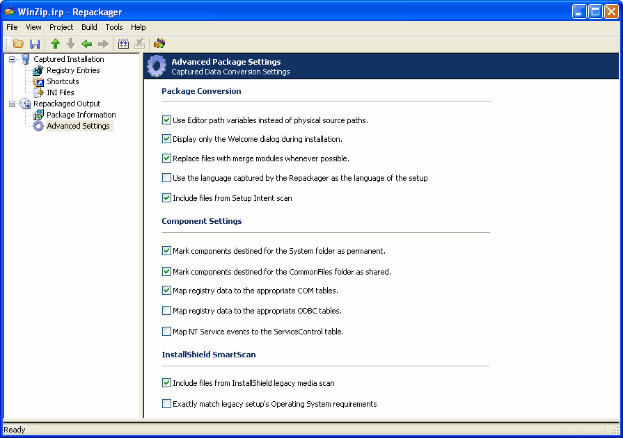 From the Advanced Package Settings view, you can configure several additional settings that may apply to your repackaged setup.