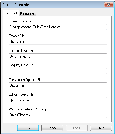 .irp) is located. - Project File —The name of the current Repackager project file.