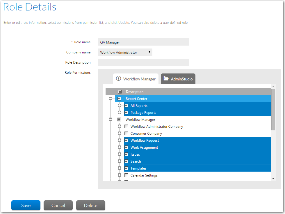 - Click Save to save your changes and return to the Role Administration page. To exit without making any changes, click Cancel .